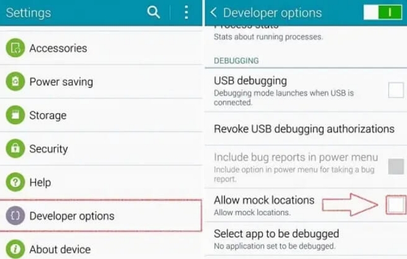 Step 2: Open the settings from your device. Find the “About phone” option > “Build Number” > tap on it seven times > “You are now a developer” notification > Go into “Developer Options” > enable the “Allow mock locations” option.
