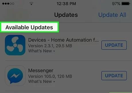 第 2 步: 捲動至“可用更新”部分並找到“Facebook”應用程式。